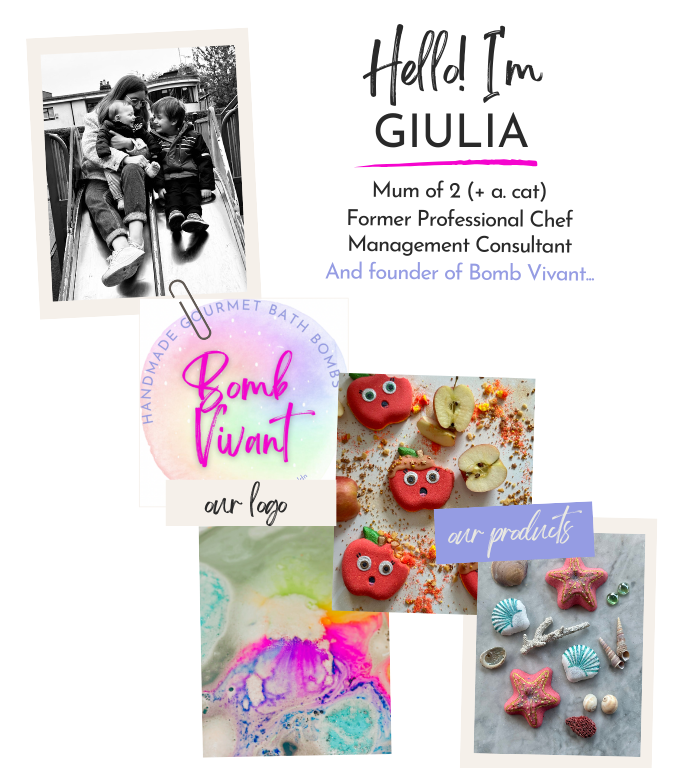 Around the same time, my mum had just gone back home to Italy after being with us for 4 months following the birth of my younger son, Chris. Suddenly feeling quite lonely one afternoon during Chris's nap-time, I decided I would try to make a bath bomb for Theo as a surprise for when he came home from school. He loved it so much that I made some more, and I’ve been hooked ever since. I started experimenting with different fragrances, oils and butters, shapes and designs to create high quality, natural, hand made bath bombs for adults and kids.